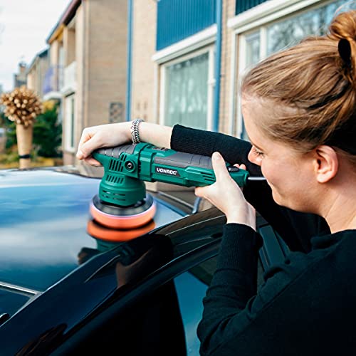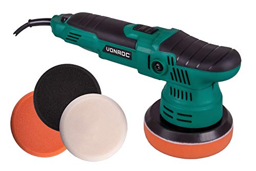 VONROC polerka mimośrodowa 650 W, Ø 125 mm, łagodny rozruch, stała moc, w zestawie z 4 gąbki polerskie