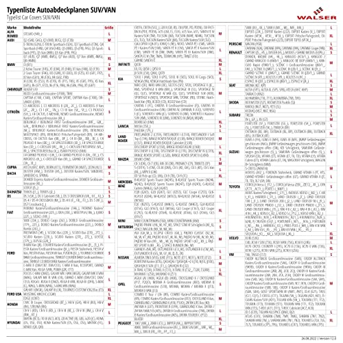 • Optymalne dopasowanie: Znajdź teraz pasującą plandekę do swojego samochodu – patrz zdjęcie informacyjne (lista typów)