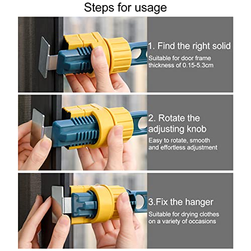 • ☞ Łatwy montaż: Ten wieszak na ubrania jest bardzo łatwy w instalacji, wystarczy wyszukać stałą powierzchnię, a następnie ustawić pokrętło, mocno pociągnąć go i powiesić po zakończeniu pracy. Bardzo dobrze nadaje się do małych pomieszczeń, łazienki, szaf, sypialni, pralni, werandy itd.