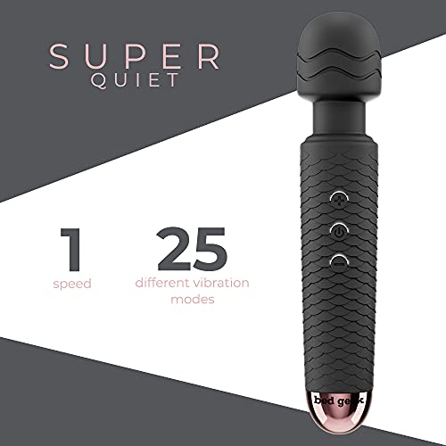 Wand Masażer od bed geek Bezprzewodowy Ręczny Masaż Elektryczny z Miękkiego Silikonu 25 Trybów Wodoodporny Akumulator Ładowany na USB (Czarny)