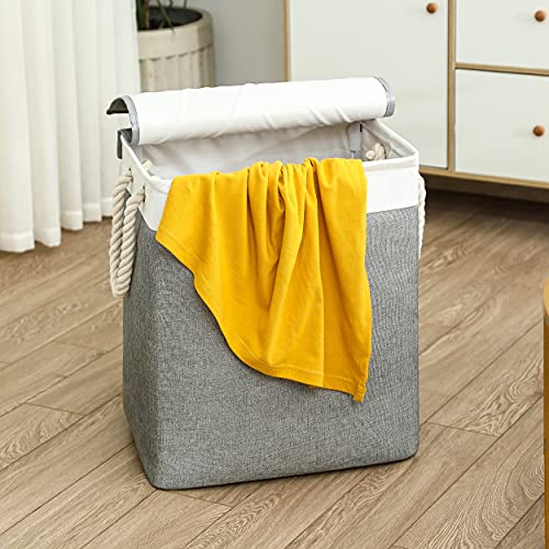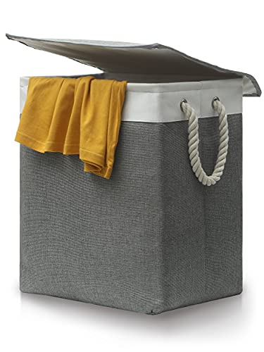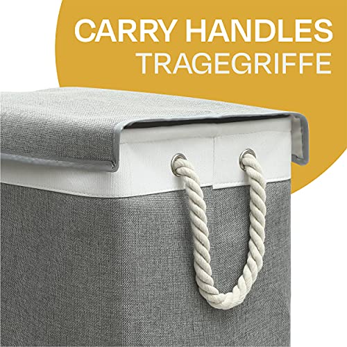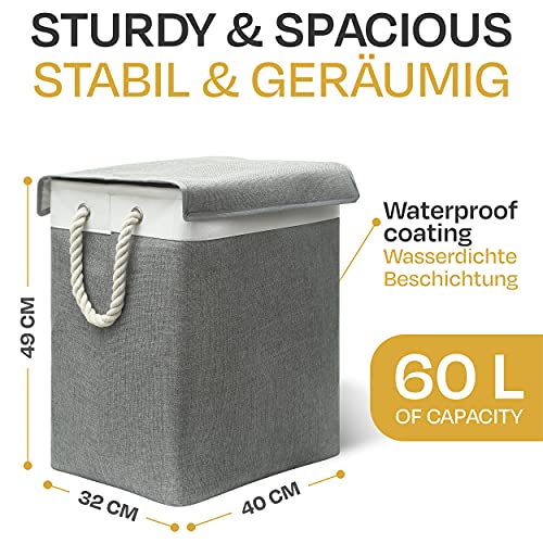 Kosz na pranie z pokrywką, szary, zajmuje mało miejsca, składany, z uchwytami do noszenia, 60 l