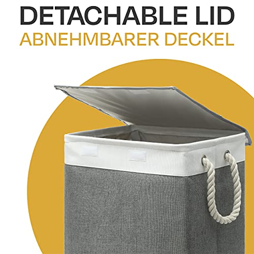 • Oszczędność miejsca: kosz na pranie z nieprzezroczystą pokrywą na rzep zapewnia porządek i prywatność w Twoim domu. Dzięki ponadczasowemu wzornictwu kosz pasuje do każdego wnętrza.