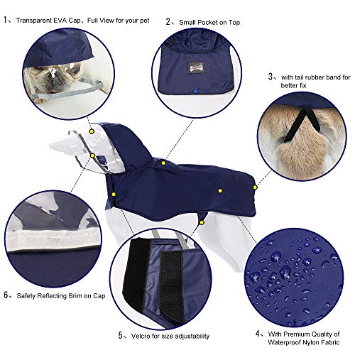 Wodoszczelny płaszcz przeciwdeszczowy dla psa, regulowany i łatwy do przenoszenia, deszcz/wodoodporny, 7 dostępnych rozmiarów od XS do XXXL, pasuje dla każdego psa