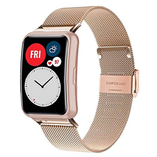 WATORY Bransoletka kompatybilna z Huawei Watch Fit, pleciona siatka ze stali nierdzewnej, metalowy pasek do zegarka, biznesowy, zapasowy pasek do Huawei Watch Fit