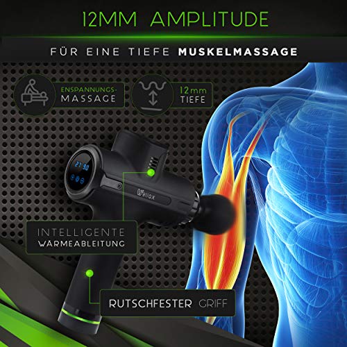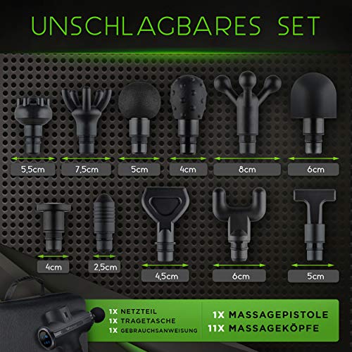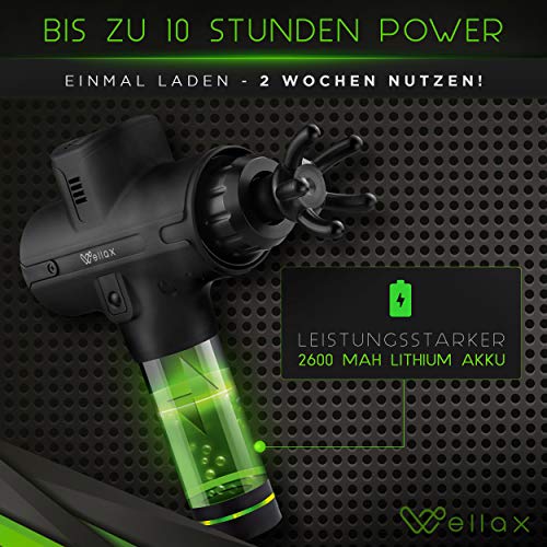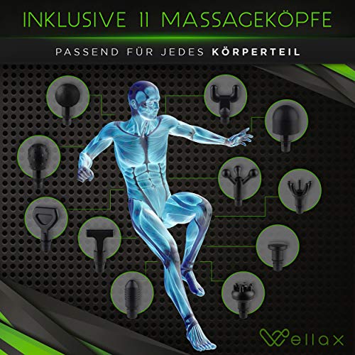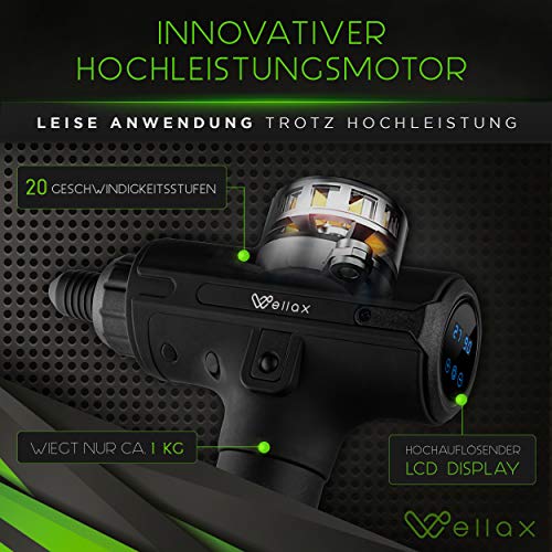 Pistolet do masażu Wellax – wydajny pistolet do masażu z 11 głowicami masującymi [2600 mAh – 10h pracy] – pistolet do masażu z wyświetlaczem LED & futerałem – ramiona & szyja
