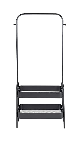 • Nowoczesny design: Wieszak na ubrania i kosze wykonane są ze stali malowanej proszkowo. Nakładki z tworzywa sztucznego zapobiegają nieestetycznym zarysowaniom na podłodze. Również boczne haki są wykonane z tworzywa sztucznego. Eleganckie, nowoczesne wzornictwo w kolorze czarnym pasuje do wielu stylów wnętrz i można je łączyć ze wszystkimi kolorami. W ten sposób praktyczny pomocnik do przechowywania i organizacji stanie się prawdziwym elementem wyposażenia wnętrz.