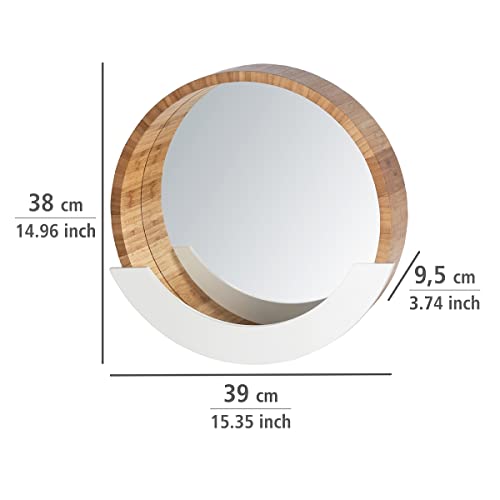 WENKO Wandspiegel Finja mit integrierter Ablage, Spiegel mit Ablagefach, Kosmetikspiegel mit Rahmen aus Bambus für Wohnzimmer, Diele und Schlafzimmer, 39 x 38 x 9,5 cm, Natur / Weiß