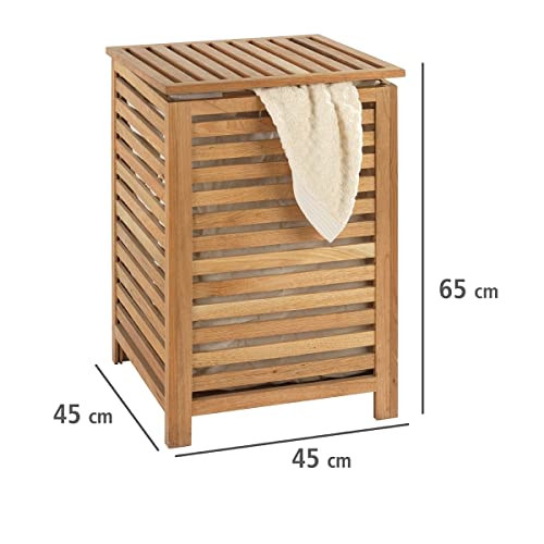 WENKO Wäschetruhe Norway, Wäschesammler mit herausnehmbarem Baumwoll-Wäschesack, Walnussholz, Fassungsvermögen 56 L, 45 x 65 x 45 cm, Natur