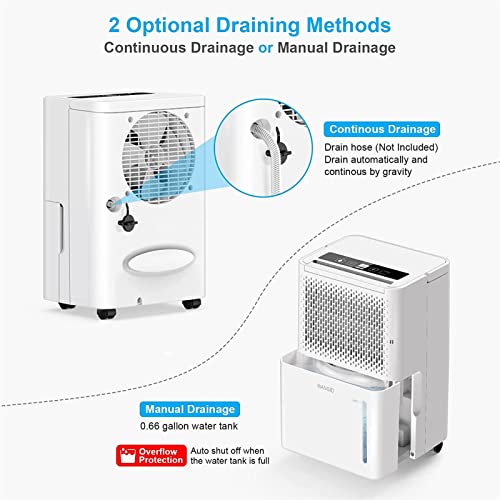 2000 Sq.Ft Dehumidifiers with Auto Drain or Manual Drainage Intelligent Humidity Control Water Full Auto Shut Off Function for Home Basements Bedroom Bathroom