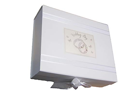 Einzelheiten: Eine atemberaubende Muster-Eheringe, große Aufbewahrungsbox mit Organza-Schleifen und Magnetverschluss. Die perfekte Aufbewahrungsbox für besondere Erinnerungen. White Cotton Cards ist ein Unternehmen für handgefertigte Geschenke und Grußkarten. Alle Karten und Geschenke von White Cotton Cards werden individuell in Großbritannien handgefertigt und jedes Produkt, das Sie bei uns kaufen, ist einzigartig und genau wie Sie, ein besonderes Accessoire. Wir von White Cotton Cards sind stolz auf unsere Arbeit und bemühen uns, jedes Produkt perfekt zu machen. Wir kümmern uns um jeden Anlass und entwickeln ständig neue Reihen, damit Sie für mehr kommen.