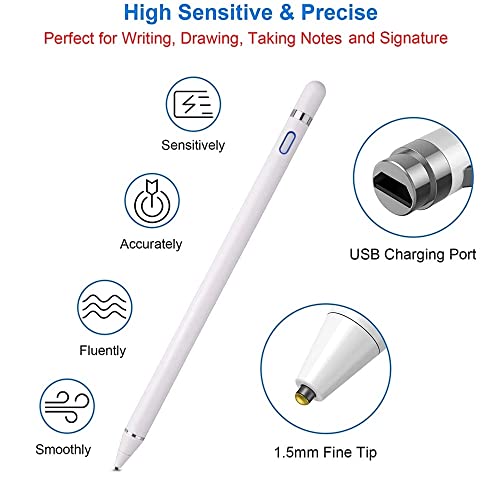 Akumulator aktywny rysik ołówek kompatybilny z Apple iPada, rysiki do ekranów dotykowych, stylista Fine Point kompatybilny z iPhone iPad Pro Air Mini i innymi tabletami (biały)