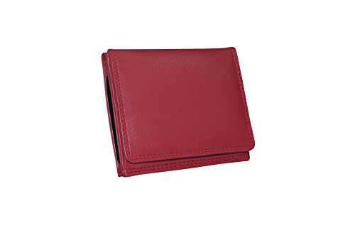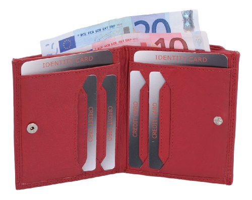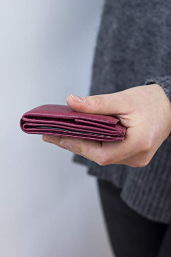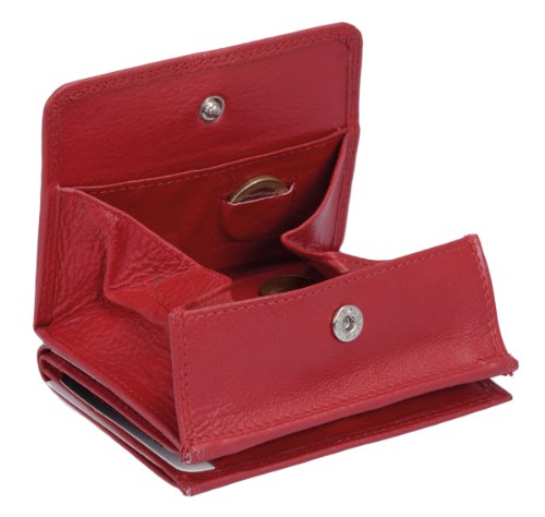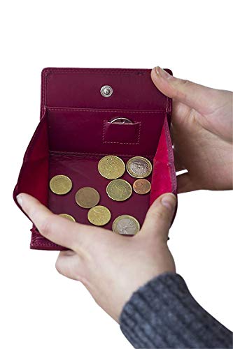 Skórzany portfel w pudełku z dużą przegródką na monety, bezpieczna smycz RFID, wiśniowy/czerwony – „LEAS Special Edition”, czerwona wiśnia, 11,5×9,5cm, portfel unisex na monety
