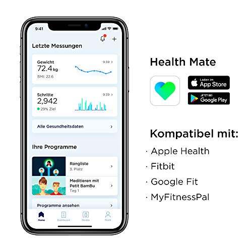 ✅ Wysoka kompatybilność –: Wysoka kompatybilność – tę inteligentną wagę można zsynchronizować z Apple Watch oraz ponad 100 najlepszymi aplikacjami dla zdrowia i fitnessu, takimi jak Apple Health, Fitbit i Google Fit.