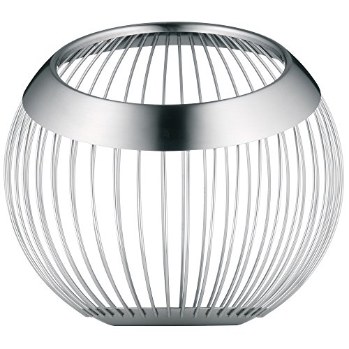 Einzelheiten: Produktbeschreibung Die filigranen Drahtgeflechte wirken mit und ohne Inhalt als Blickfang. Der breite Edelstahlrand und die gebogenen Drähte bilden einen spannungsvollen Kontrast. Nur erstklassiges Material und sorgfältige Verarbeitung sorgen für Formbeständigkeit. Ein Idealer Drahtkorb mit 27 gebogenen Drähten, handgefertigt mit sicherem Stand. Der Rand des Korbes ist mattiert, die Drähte poliert.Mit den Körben von Living Lounge fängt der Tag gut an: In ihnen kommen Brot Brötchen und Croissants besonders hübsch zur Geltung. Die filigrane Konstruktion aus Draht verleiht den Körben aus poliertem und mattiertem Edelstahl eine Vintage-Note auch Obst und Naschereien wirken darin fast wie Designobjekte – und sogar ohne Inhalt ziehen die Einzelstücke alle Blicke auf sich. Es gibt sie in verschiedenen Größen und Höhen mit 13 bis 26 Zentimeter Durchmesser. Gefertigt aus Cromargan sind sie besonders unempfindlich und können in der Spülmaschine gereinigt werden. Zur Serie gehören auch ein drei- und fünfflammiger Leuchter sowie eine Gießkanne für die Fensterbank. Produktbeschreibung des Herstellers Funktion: Durch die nach vorne gebeugte Form ist leichtes Entnehmen möglich. Geeignet für Obst und Zitrusfrüchte. Rechtliche Hinweise Kein rechtlicher Hinweis