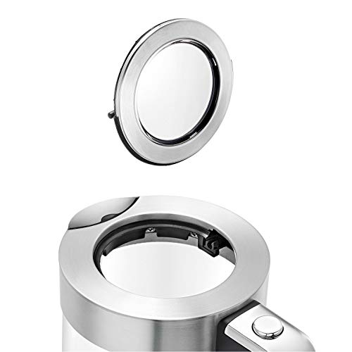 - Kabelloser Wasserkocher mit separatem 36 °C-Gerätesockel inkl. Kabelaufwicklung. Herausnehmbarer, abwaschbarer Kalk-Wasserfilter. Das Edelstahlheizelement ist verdeckt eingebaut