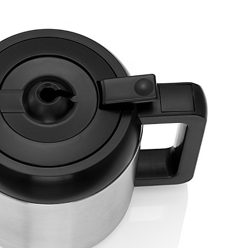- Inhalt: 1x Kaffeemaschine matt (25 x 17 x 34,1 cm, 1 W), Thermoskanne (1, l) für 8 Tassen mit Durchbrühdeckel, Tropfstopp (kein Nachtropfen nach Brühende) und Überlaufsicherung – Artikelnummer: 41216 11