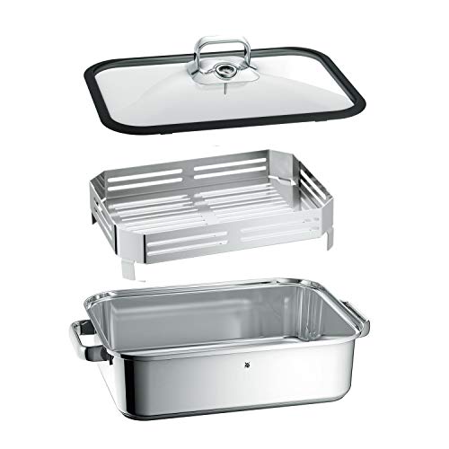 WMF Vitalis Dampfgarer/Bräter, Compact, Glasdeckel mit Silikonrand, Thermometer, Garblech Edelstahl Cromargan spülmaschinengeeignet Induktion, 35 x 21,5 x 10 cm, V 3,5 l