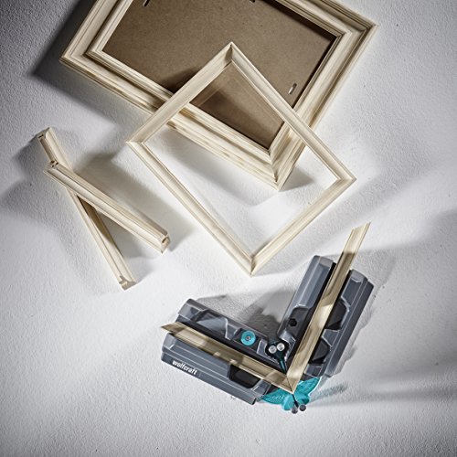 - Dank integrierter Winkel Skala können sowohl Außen- als auch Innenwinkel zwischen 85° und 180° exakt bestimmt und die Gehrungslade stufenlos in jedem Winkel durch eine Schraube festgestellt werden
