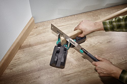 - Einfach Handhabung: Die Gehrungslade in der Ecke ansetzen und die Schenkel an die Wand anpassen, durch die Feststellschraube fixieren und die Fußleiste zum Sägen einsetzen – los geht’s!