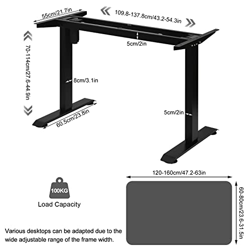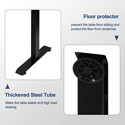• Niezawodna jakość: Aby zwiększyć bezpieczeństwo i wytrzymałość stołu o regulowanej wysokości, wybraliśmy wzmocnione rury ze stali nierdzewnej dla trwałej, odpornej na ciśnienie i nieodkształcającej się konstrukcji. Maksymalne obciążenie wynosi do 100 kg. Nogi w kształcie litery T z ochroną stóp zapewniają wysoką stabilność na podłodze i jednocześnie chronią ją przed zadrapaniami