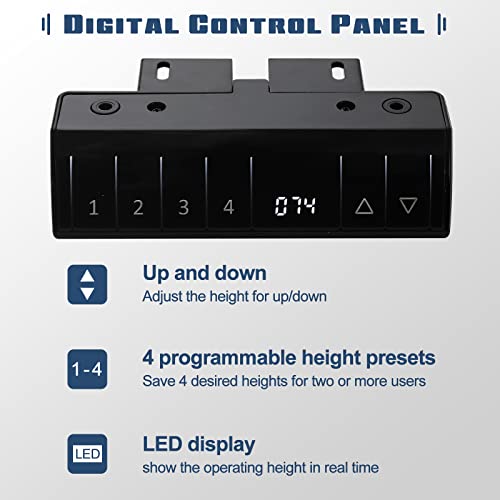 • Bezpieczny silnik: Nasze biurko z regulacją wysokości jest wyposażone w silnik elektryczny. Z prędkością podnoszenia 21 mm na sekundę silnik pracuje delikatnie, ale bardzo stabilnie. Nie musisz się martwić o hałas silnika, ponieważ poziom hałasu jest całkowicie dopuszczalny: mniej niż 48 dB