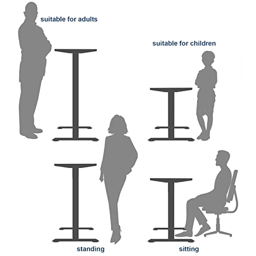 • Odpowiednie blaty stołu (nie wchodzą w zakres dostawy): pulpit stojący jest regulowany na wysokość od 70 do 114 cm i szerokość od 110 do 138 cm. Nadają się do blatów o szerokości od 120 do 160 cm i głębokości od 60 do 80 cm. W zależności od wzrostu i dostępnej powierzchni roboczej można wybrać odpowiedni blat stołu