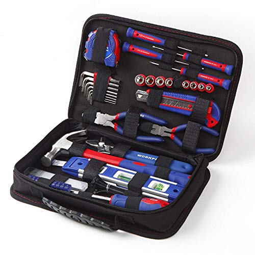 ✅ 【Wzornictwo typu wszystko: 【Wzornictwo typu wszystko w jednym】: WorkPRO 100-częściowy zestaw podstawowych narzędzi zawierających młotek, poziomicę, taśmę mierniczą, nóż uniwersalny, szczypce, śrubokręt, klucz płaski, opaski kablowe i wiele innych.