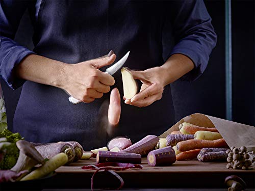 - Wenn Gemüse, Kartoffeln, Zwiebeln oder Obst geschnitten oder geschält werden sollen, ist das wendige Officemesser mit schlanker Klinge (12cm) als Gemüse-, Obstmesser oder Schälmesser ein vielseitiges Allzweckmesser – auch für kurze Schnitte an Fleisch