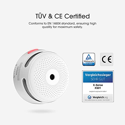 X-Sense Rauchmelder Mini Feuermelder mit 10 Jahren Batterielaufzeit, TÜV und EN14604 Zertifizierter Rauchwarnmelder, Feueralarm mit Fotoelektrischem Sensor, XS01 (6er Set)