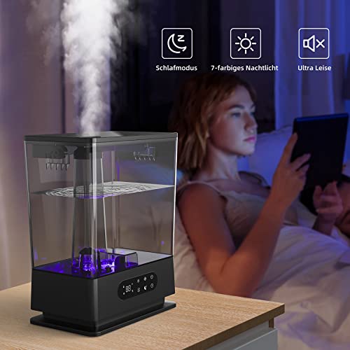 - (Feuchtigkeitseinstellung) 3 verschiedene Dunststufen sind verfügbar, um sich an Ihre Bedürfnisse und sich ändernde Umgebung anzupassen; Auswahl der Luftfeuchtigkeit von 55 Prozent bis 90 Prozent, um die angenehmste und idealste Umgebung für Sie zu schaffen