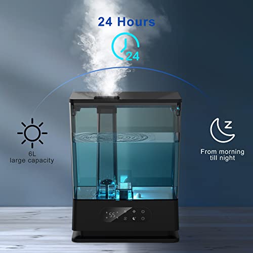 - (Große Kapazität & Top-füllung)6L Wassertank erlaubt bis 60 Stunden Dauerbetrieb bei niedriger Kalt-Nebelstufe, ohne Sie ihn auffüllen müssen,Die luftbefeuchter obere Öffnung ist groß genug, um Wasser bequem zu befüllen