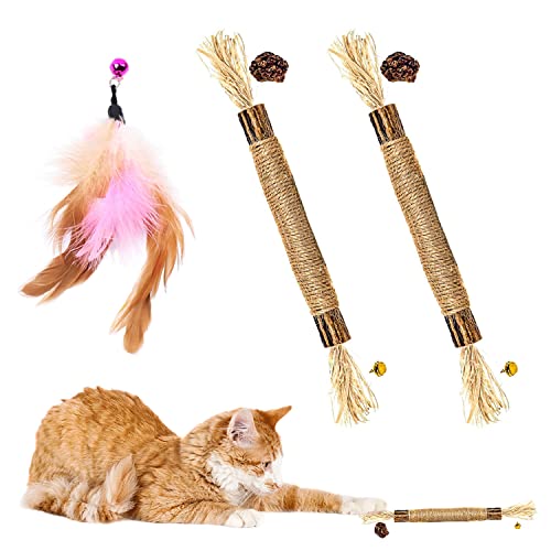 Pałeczki dla kotów, XPOOP 3 szt. Srebrne pałeczki do żucia dla kotów, zabawka do żucia dla kotów, naturalne pałeczki do żucia dla kota Matatabi zabawki dla kota, pałeczki do czyszczenia zębów kota i usuwania stresu