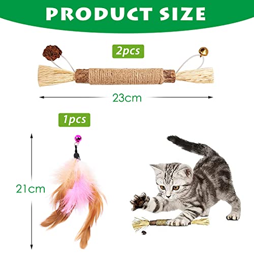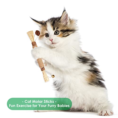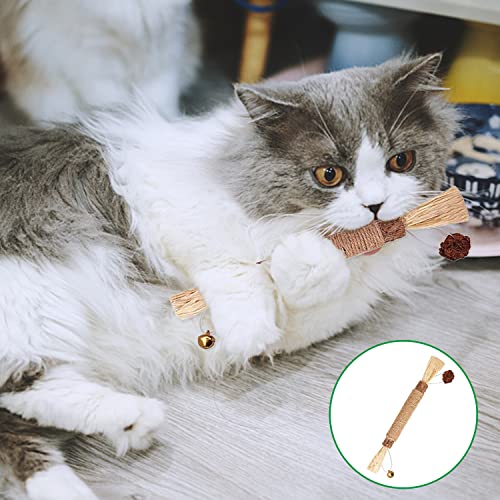 • 【Czyszczenie zębów】 Kot gryzy się patyki, żucie jest naturalną częścią zachowania kota. Ta zabawka do żucia dla kota została zaprojektowana tak, aby wspierać zdrowie zębów. Pałeczki kocimiętki i srebrna winorośl dla tych pałeczek kocimiętka mogą naturalnie zarysować płytkę nazębną i kamień nazębny podczas żucia. Mocowanie liny sprawia, że zabawka jest odporna na gryzienie. Nadaje się dla kotów i kociąt.