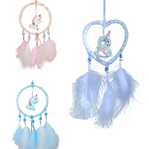 Xumier 3 sztuki łapaczy snów, uroczy jednorożec, ręcznie wykonany, ozdoba na ścianę, prezent na ślub, dobre marzenia, pomieszczenie, dziewczynki, kreatywna dekoracja, błogosławieństwo, prezent i ozdoba na ścianę, ozdoba mieszkania