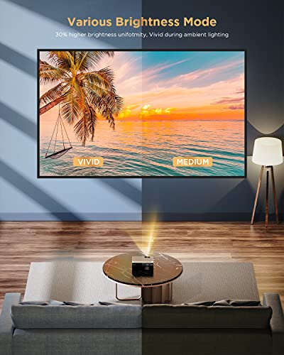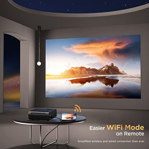 • Bezprzewodowy projektor Bluetooth: jedno kliknięcie połączenia WiFi i głośnika Bluetooth, łatwe w obsłudze. Obsługuje połączenie bezprzewodowe/przewodowe. Niezależna funkcja Bluetooth, dzięki czemu telefon komórkowy może bezpośrednio połączyć się z Bluetooth projektora, aby odtwarzać muzykę. Projektor może być również używany jako głośnik Bluetooth.