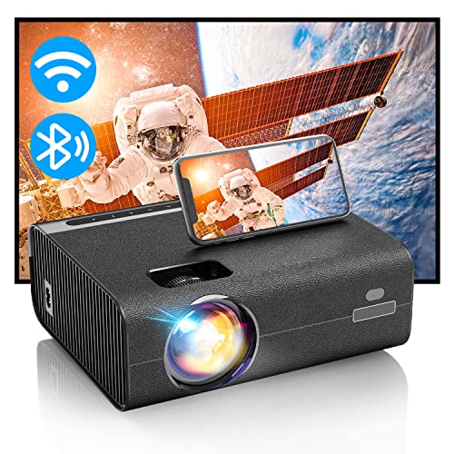 YCLZY Projektor Bluetooth z płótnem, Full HD 1080p WiFi, 9000 lumenów, zewnętrzny projektor LED, 10000:1, kontrast, światło dzienne do kina domowego, iOS, Android, laptopa, kija telewizyjnego, PS5