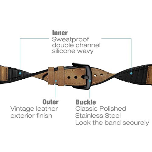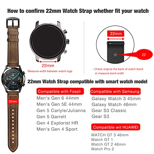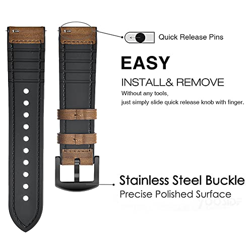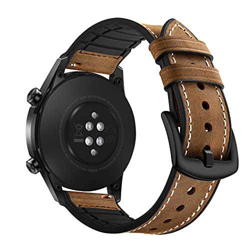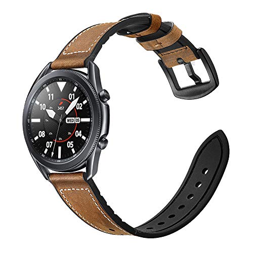 Yooside Skórzany pasek do Samsung Galaxy Watch3 45 mm, 22 mm, skóra naturalna + silikonowy pasek do zegarka Huawei Watch GT 2 46 mm (brązowy)