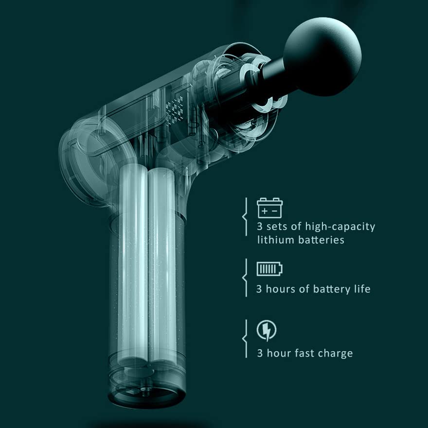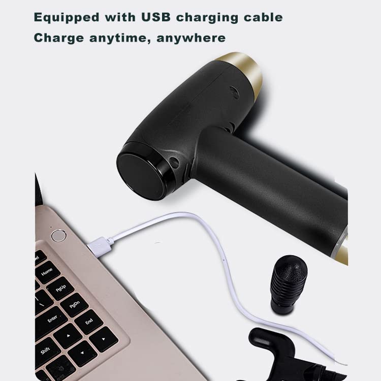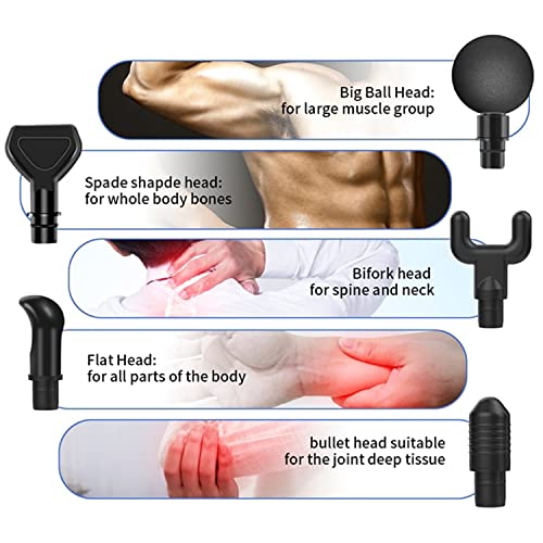 Zamelux Pistolet do masażu karku, ramion, pleców, masażer ręczny, 20 stopni prędkości, 6 głowic masujących do głębokich tkanek