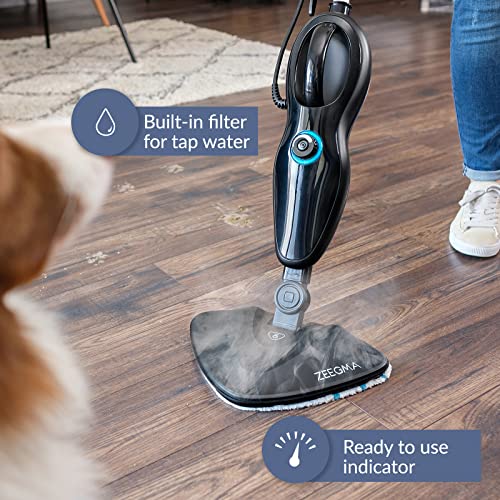 ZEEGMA PUUR Dampfreiniger, chemikalienfreie Reinigung, einsatzbereit in 25 Sekunden, 7 verschiedene Aufsätze, 2 Wasserfilter, 5m Kabellänge, Leistung 1500 W