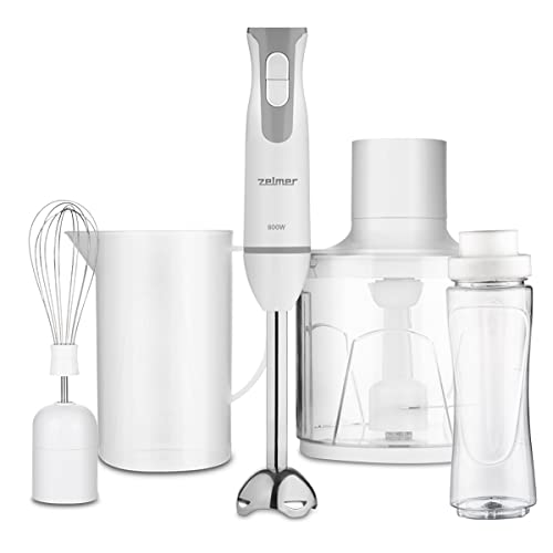 Zelmer Blender ręczny – ZHB4554S blender sportowy, 800W, funkcja TURBO, 2 noże, blender sportowy o pojemności 600 ml, biało-szary.