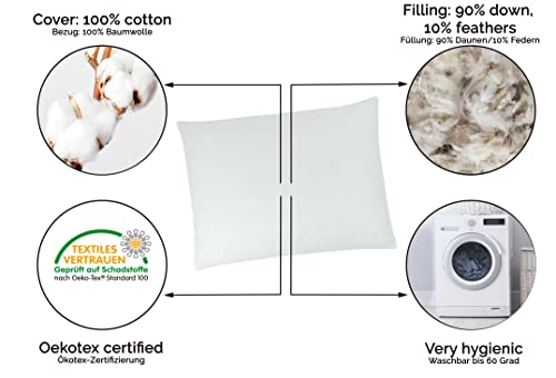 ZOLLNER Poduszka z Pierza 70×90 cm, 90% Pierze + 10% Puch, Biała