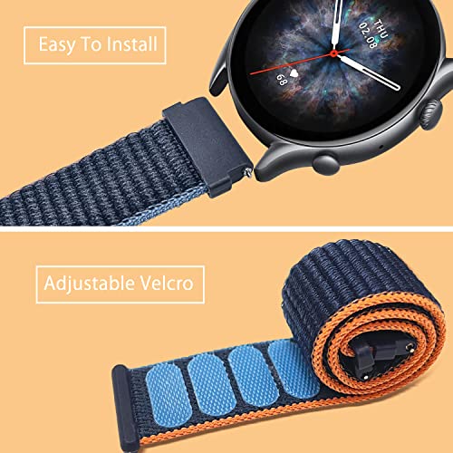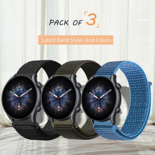 3 sztuki bransoletek 22 mm do Amazfit Balance/Bip 6/Bip 5/GTR 4/GTR 3 Pro / GTR 3 / GTR 2e/GTR 2, nylonowe zapięcie na rzepy do Amazfit Cheetah/Cheeta
