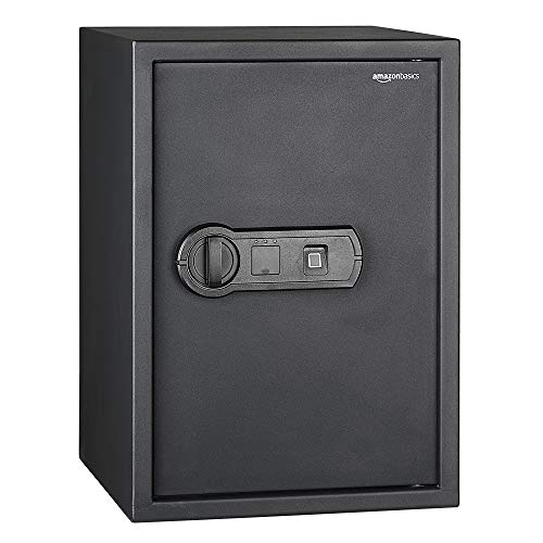 Amazon Basics Stalowy sejf domowy z programowalnym zamkiem biometrycznym na odcisk palca, bezpieczna gotówka, biżuteria, dokumenty tożsamości, 51 l, 35 x 33 x 50 cm, czarny