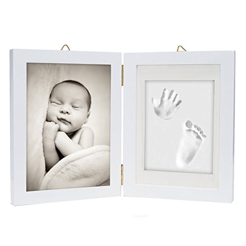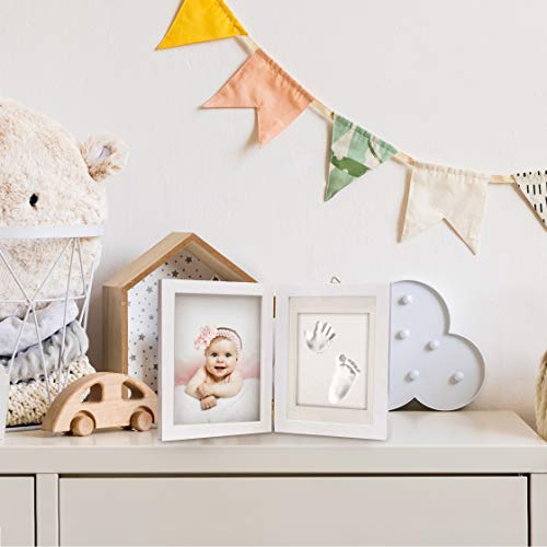 Chuckle – Ramka na zdjęcia z gliny i dłoni dziecka, zestaw pamiątkowy – prezent na Dzień Matki, nowa mama i rodzice, noworodki, baby shower, przyjęcie i dekoracja pokoju dziecięcego – biała