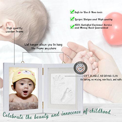 ✅ Kompletny zestaw –: Kompletny zestaw – stwórz z łatwością ponadczasową pamiątkę za pomocą naszego kompletnego zestawu, który zawiera wszystko, czego potrzebujesz, aby zrobić piękne wrażenie na dłoniach i stopach Twojego malucha. Zestaw zawiera wysokiej jakości podwójną ramkę, która pasuje do zdjęć o wymiarach 12,7 x 17