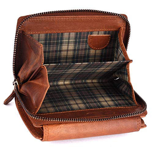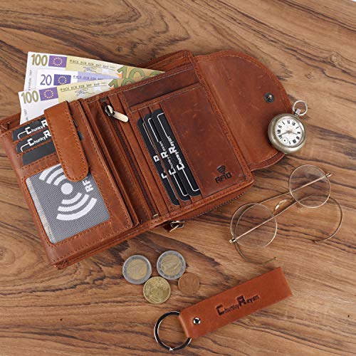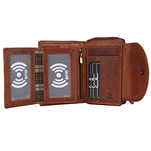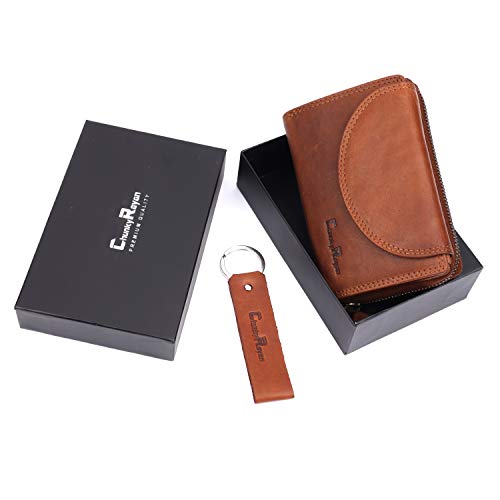 Prawdziwy Skórzany Portfel Damski Wysokiej Jakości Ochrona RFID w stylu Vintage w Tym Skórzany Brelok do Kluczy GB-3 Brown