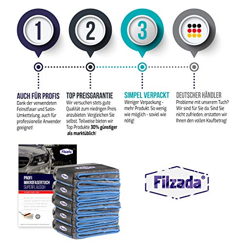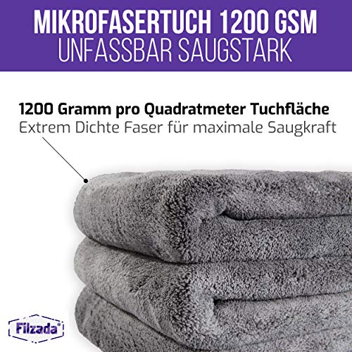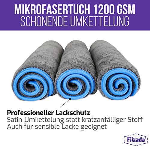 Filzada® 5x Ściereczka z mikrofibry do ochrony lakieru samochodowego 1200 GSM – niewiarygodnie chłonna i niestrzępiąca się dzięki wyjątkowo miękkiej mikrofibrze – ściereczka do polerowania samochodu do profesjonalnej pielęgnacji samochodu 42x48cm (3)