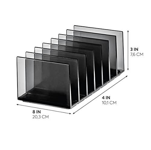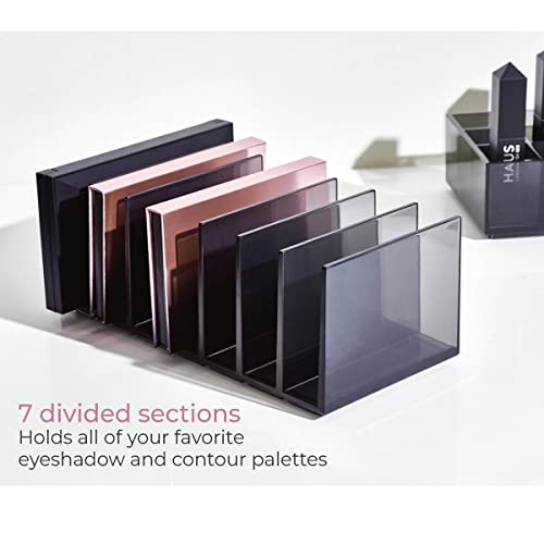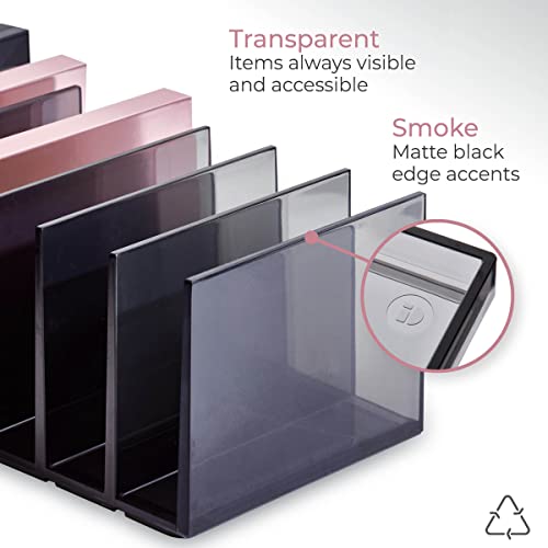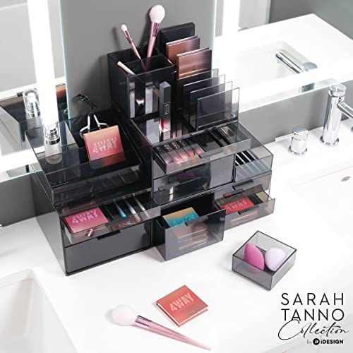 iDesign Półka do przechowywania makijażu z serii Signature firmy Sarah Tanno, 7-komorowy organizer do palety makijażu RPET, system przechowywania kosmetyków, dym/czarny matowy