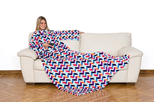 Kanguru 1131 Deluxe Trendy koc do wtulania się z rękawami i kieszenią na brzuchu z poliestru z nadrukiem, 210 x 140 x 1 cm