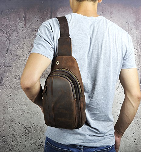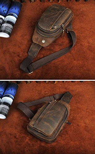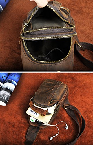 Le’aokuu Męska skórzana saszetka na biodra Saszetka na klatkę piersiową Torba na brzuch Torba crossbody Torba na ramię Torba na ramię Torba na szyję Do joggingu motocyklowego 010 (010 A-ciemny brąz)